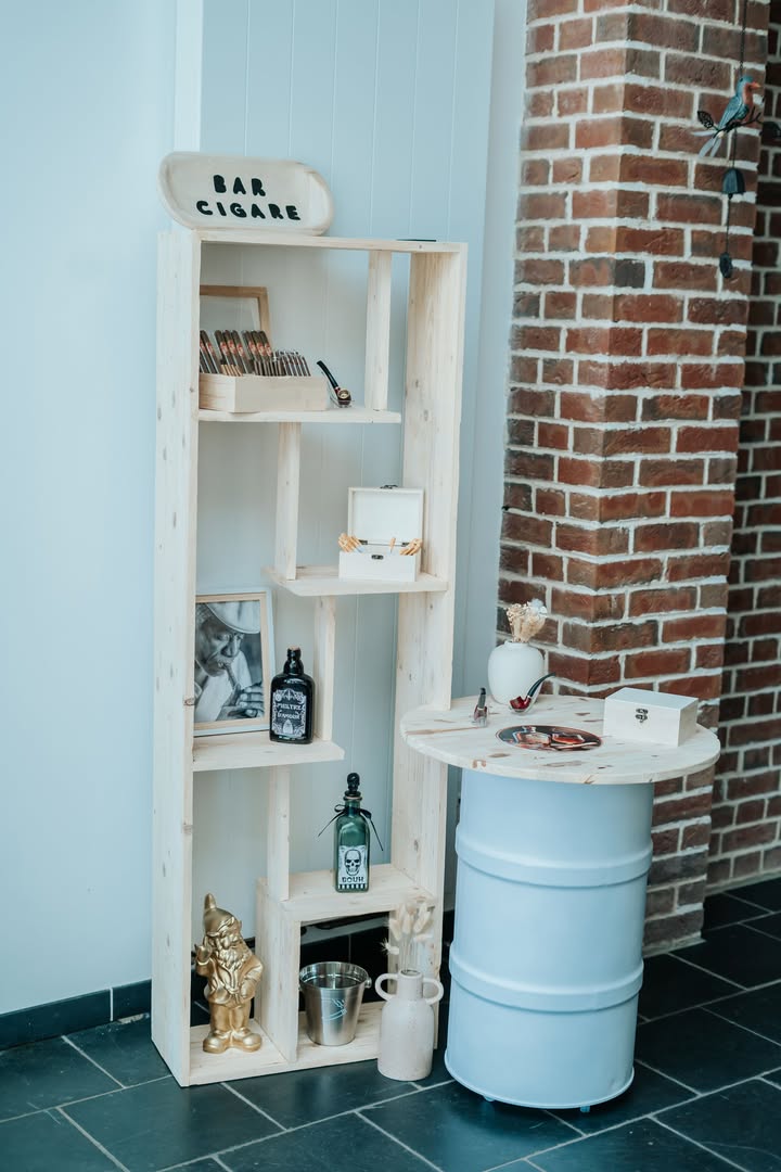 - Chevalet en bois, idéal pour y maintenir un panneau d’accueil ou un plan de table