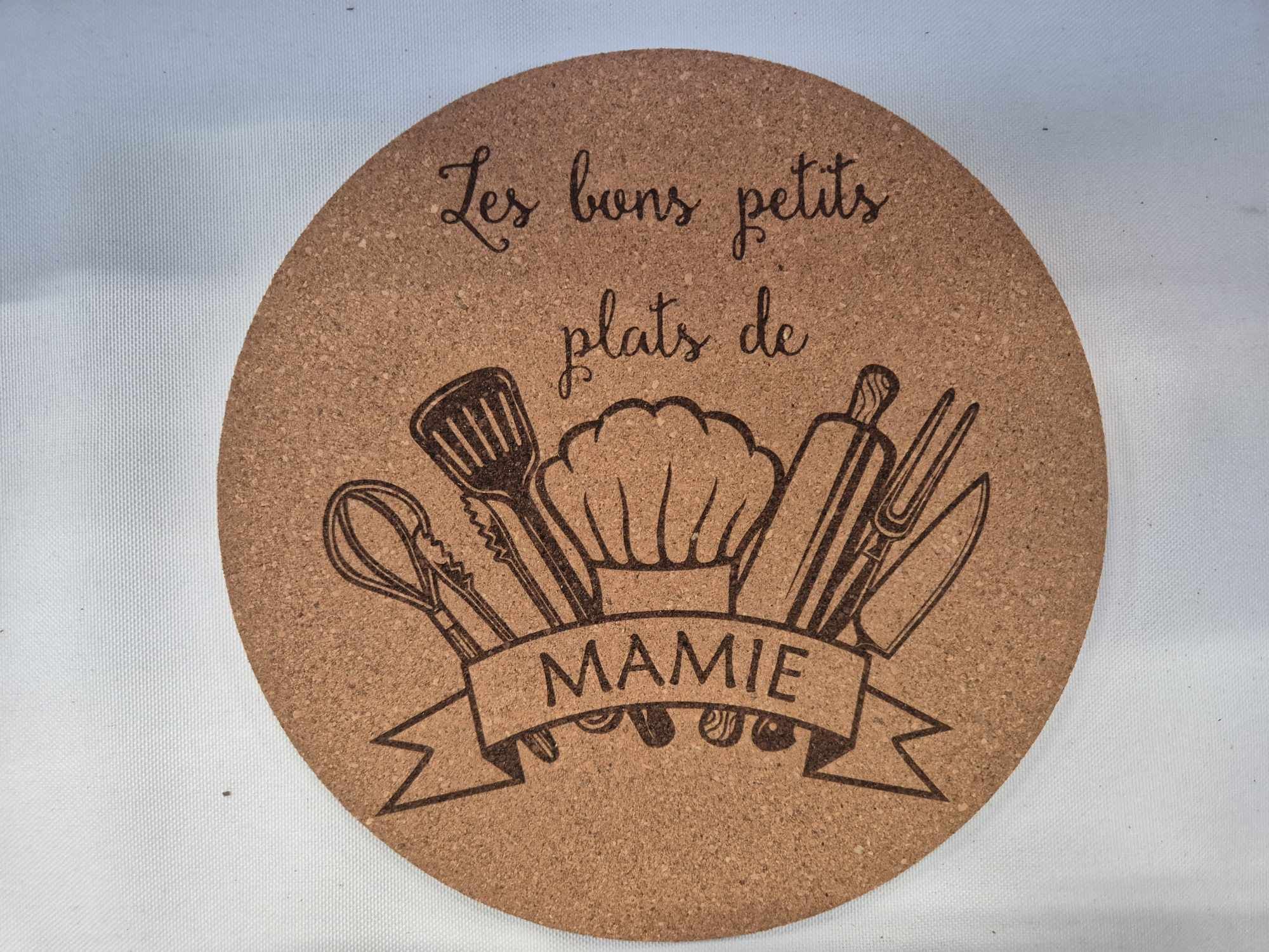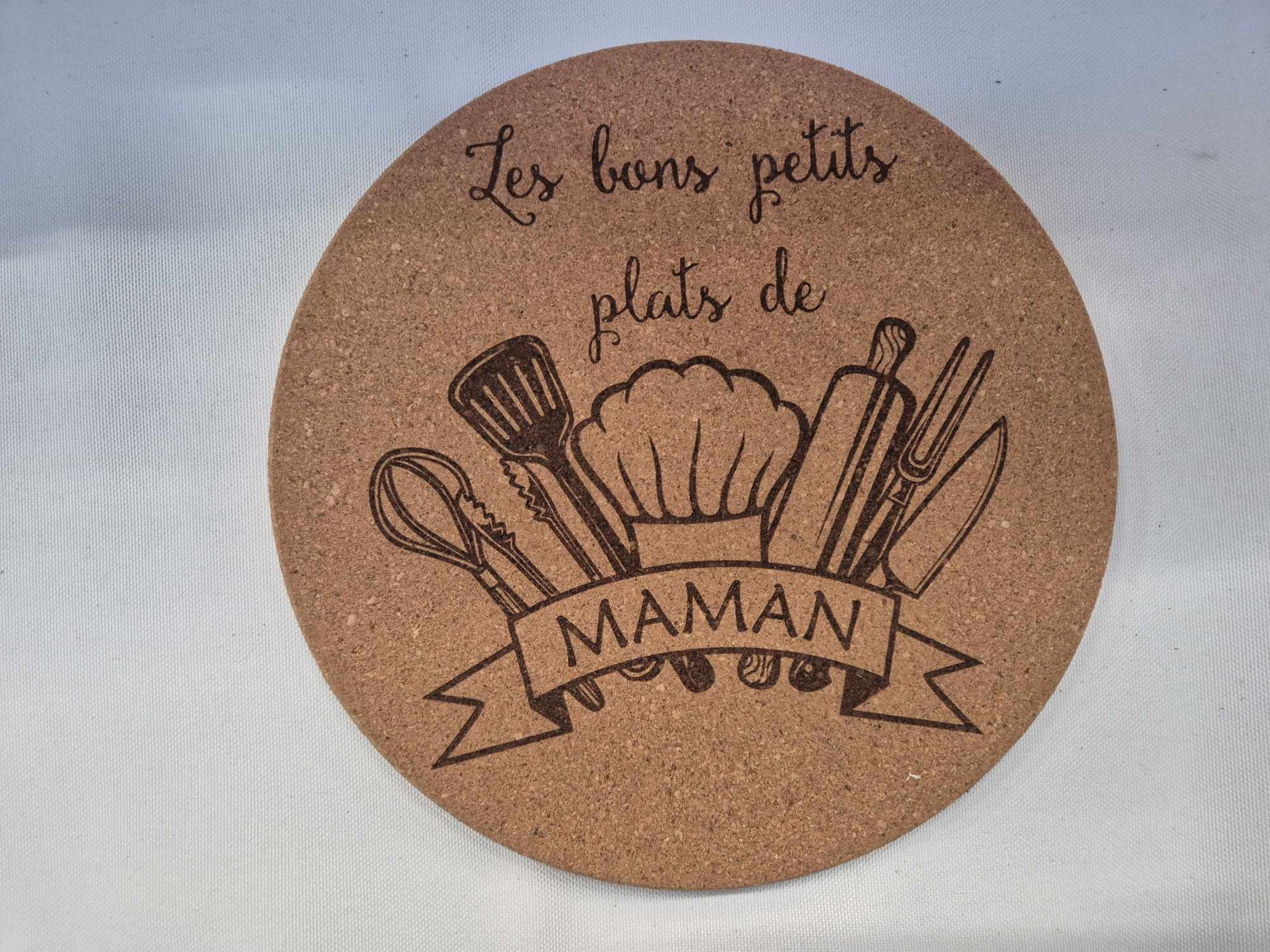 Dessous de plat en liège gravé : Les bons petits plats de Maman, modèle 2