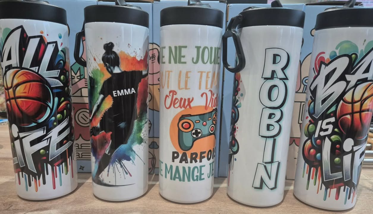 Offrez une gourde isotherme personnalisable unique qui vous accompagne partout. Grâce à sa personnalisation avec photo, prénom ou dessin, cette bouteille devient un accessoire pratique et original, parfait pour le quotidien.