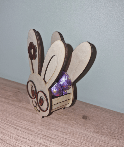 Ce petit contenant lapin en bois pour œuf en chocolat est parfait pour apporter une touche de douceur et de créativité à vos célébrations de Pâques.