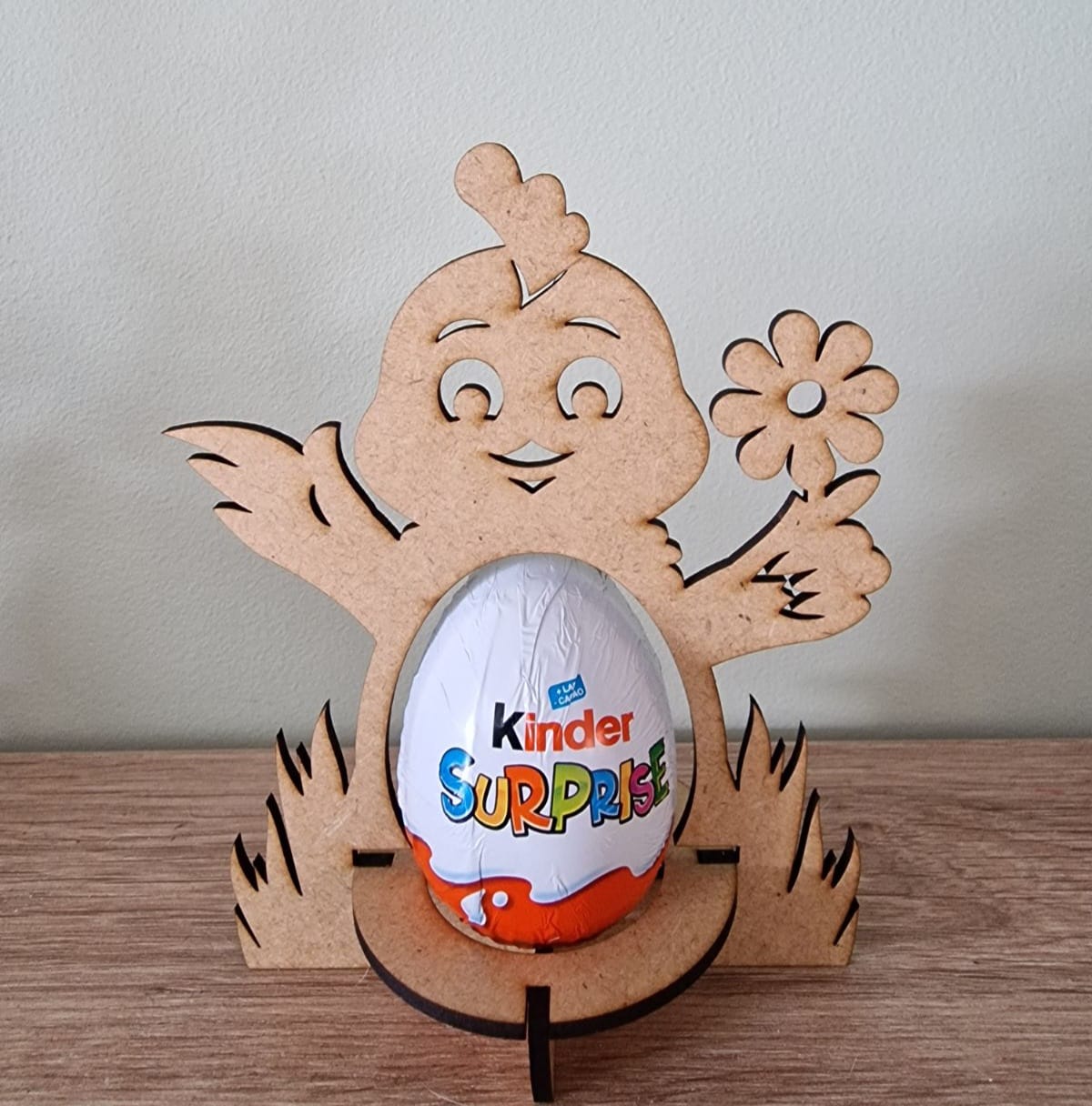 Ajoutez une touche magique à la chasse aux œufs avec ce poussin de Pâques en bois personnalisé, spécialement conçu pour accueillir un œuf Kinder Surprise. Ce joli support en forme de poussin tient délicatement l’œuf dans ses bras et peut être gravé avec le prénom de l’enfant, créant ainsi un cadeau unique et mémorable.
